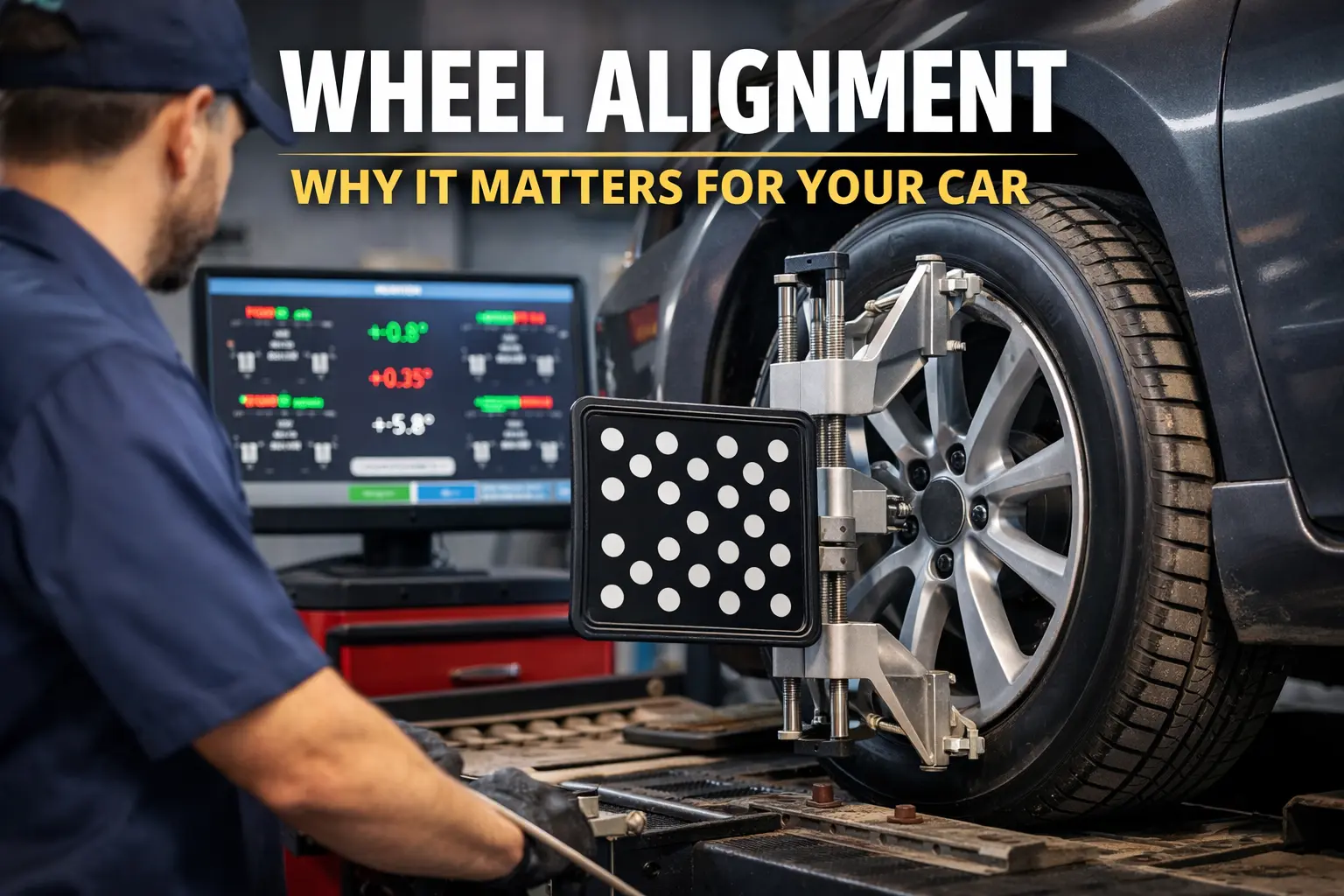 A wheel alignment matters because it helps your car drive straight, protects your tires from uneven wear, and keeps handling safe and predictable.