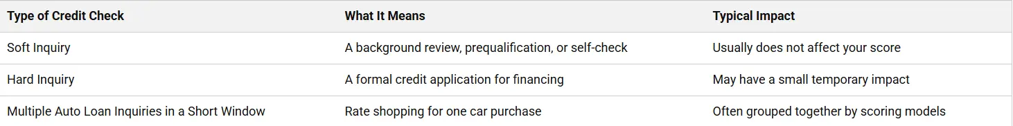 That means rate shopping for a vehicle is generally not the same as applying for several unrelated types of credit. Still, you should avoid applying for credit cards, personal loans, or other financing around the same time if possible.