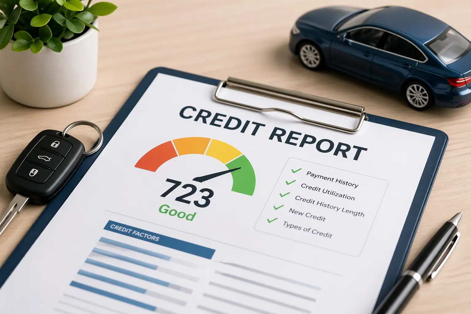 A dealership and its lending partners usually see more than just the score. They often review account history, payment patterns, balances, past auto loans, inquiries, and major negative items.